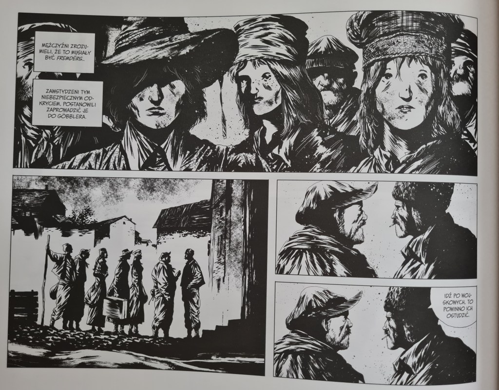 Powyżej obrazek pokazuje przybycie do miasta Anderera, Raport Brodecka, wyd. Mandioca.