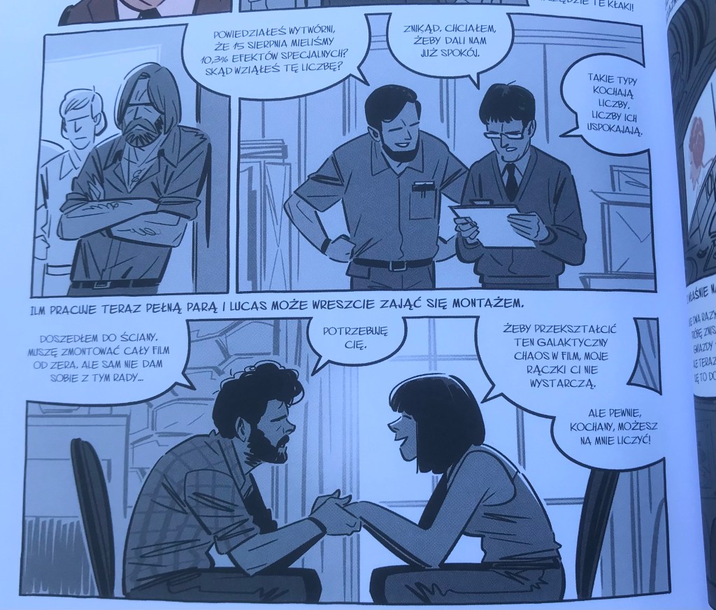 Znając serię pierwszych filmów „Gwiezdne Wojny” zastanawiałem się jak przebiegał proces ich tworzenia. Czasami interesują mnie takie rzeczy. Np. kupiłem kiedyś na wyprzedaży w Empiku scenariusz do filmu do „Skazani na Shawshank” w oryginalnym języku. Coś wspaniałego! Co można odkryć w dialogach, pomimo tego że obejrzałem film co najmniej kilkanaście razy w życiu. Wracając do Gwiezdnych Wojen nigdzie nie mogłem znaleźć odpowiedniej literatury czy zbiorczej dokumentacji jak powstawały, aż trafiłem na komiks „Wojny Lucasa”, który opowiada o tym przedsięwzięciu.