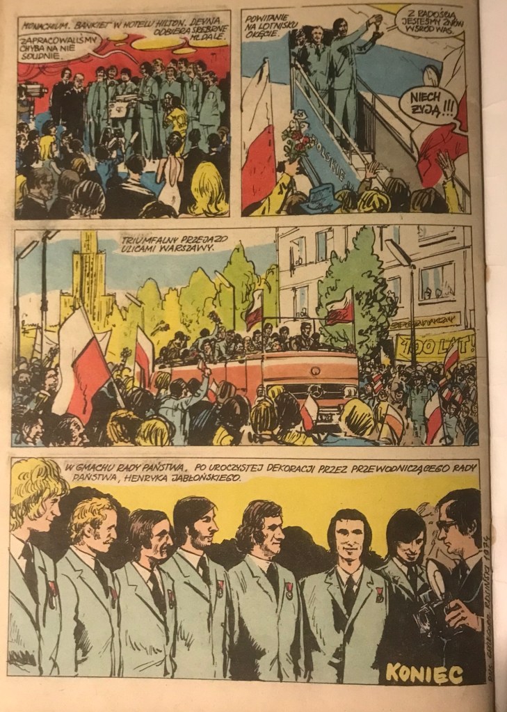 Póżniej już nic takiego nam się nie przytrafiło i pewnie ten komiks też by nie powstał gdyby wtedy nie udało się nic wygrać. Świadczy o tym choćby fragment gdy drużyna narodowa przybyła z Walii w 1973 po porażce 2:0, nikt ich za karę nie przywitał na lotnisku i nie zwracał na nich uwagi . Obecnie wita się i tych przegranych, robi konferencje i reklamy produktów.