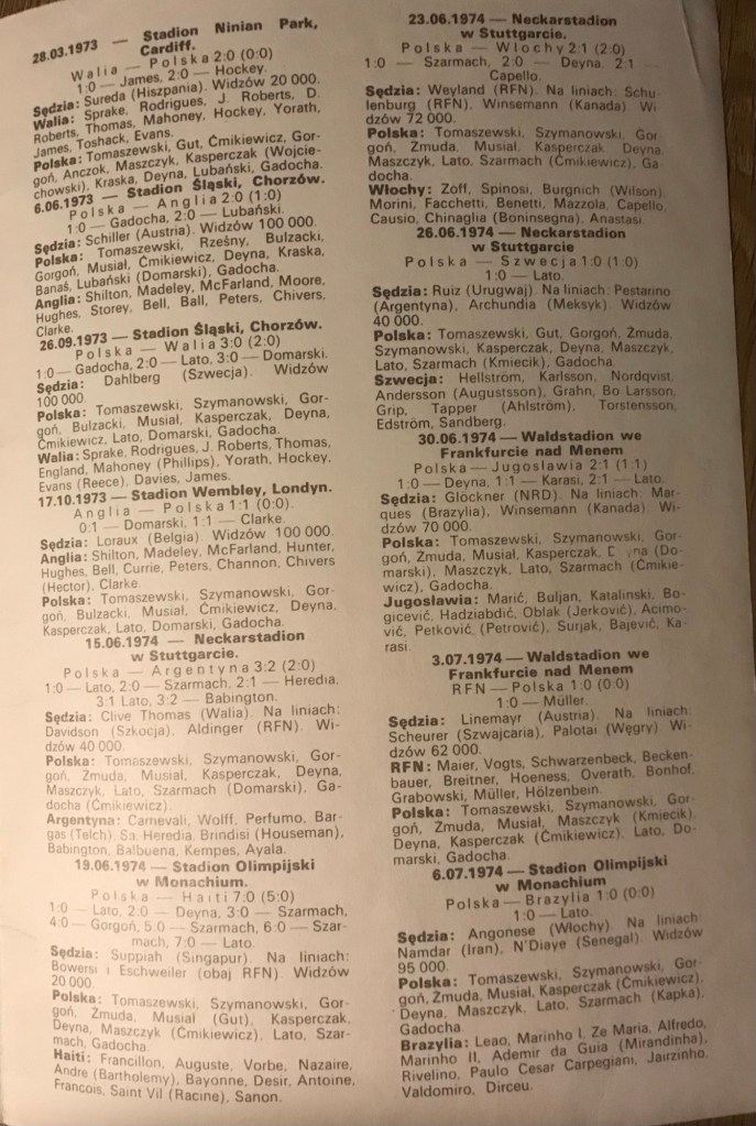 Na 18 kartkach – 32 stronach zapisano historię najwspanialszego czasu jaki przeżywał polski futbol tj. w latach 1973 -1974.
